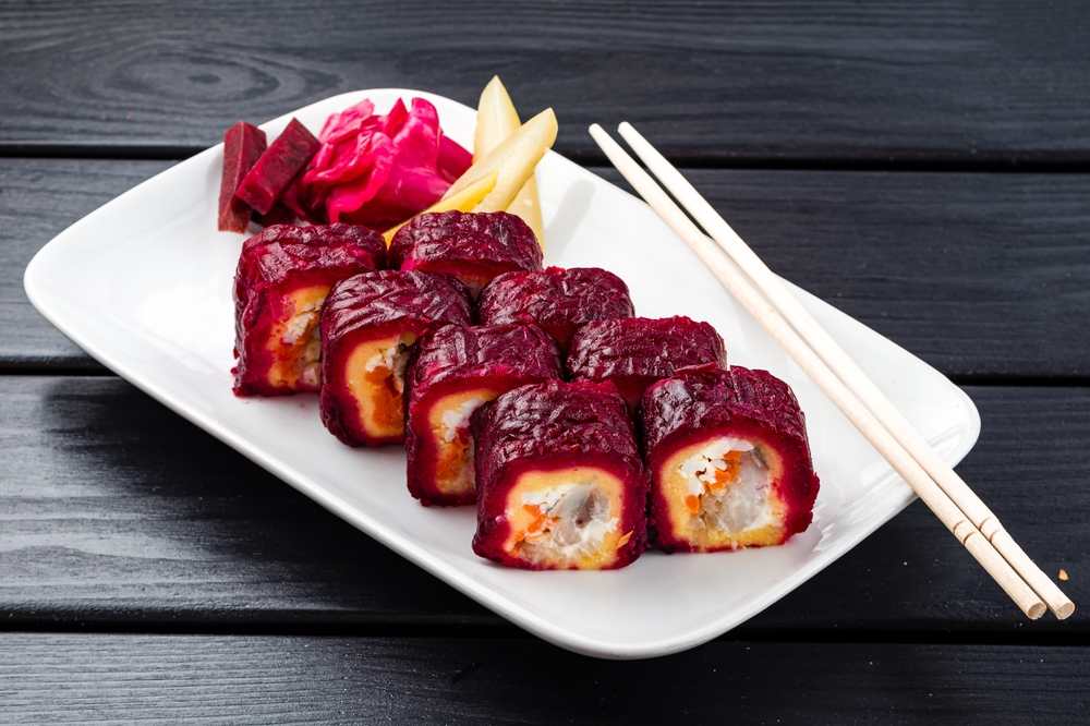 Этот зрелищный рулет «Сельдь под шубой» гарантированно произведет фурор. Вкус — тот самый любимый баланс сладкой свеклы, овощей и соленой селедки, но в более нежной и сочной текстуре. Классика с эффектной подачей!