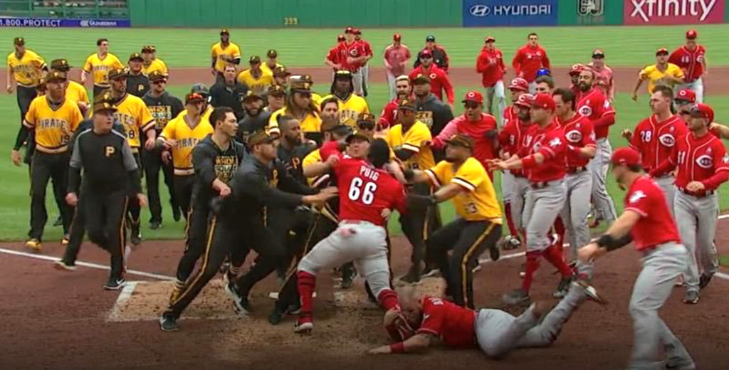 В девятом иннинге Эмир Гарретт из «Цинциннати» бросил перчатку и побежал к скамейке запасных «Питтсбурга», затеяв потасовку, к которой затем подключились и остальные игроки обоих клубов.