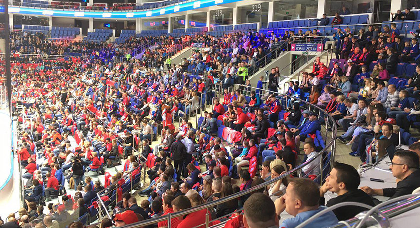 На матч хоккейного клуба ЦСКА против ярославского «Локомотива» в рамках регулярного чемпионата Континентальной хоккейной лиги (КХЛ) пришло около 65% болельщиков, передаёт корреспондент News.ru. Встреча проходит на «ЦСКА Арене» в Москве.