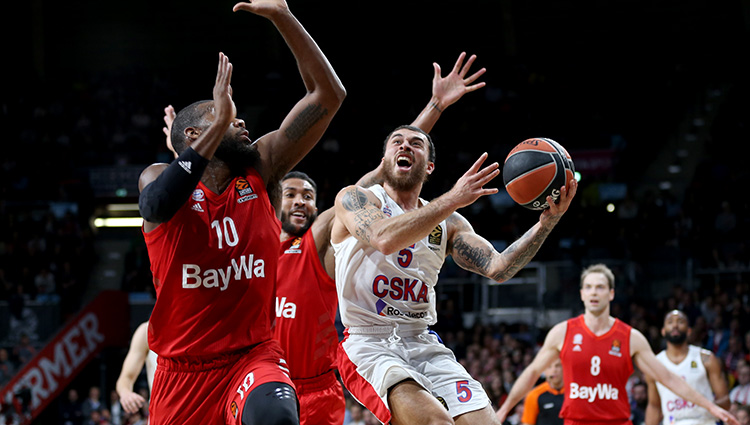 Московский баскетбольный клуб ЦСКА в матче 18-го тура Евролиги в гостях обыграл мюнхенскую «Баварию» со счётом 84:77 (18:10, 23:15, 18:27, 25:25)