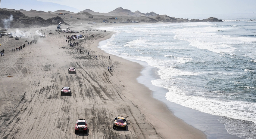 Особенность дня: у мотоциклистов и квадроциклистов будет отличный от внедорожников и грузовиков маршрут. Гонка начнётся с рассветом и будет иметь программу из двух разных СУ. Пески Танака и около 30 км в горных дюнах, а потом ещё и долгая дорога в Арекипу. Многие экипажи прибудут на бивуак довольно поздно.