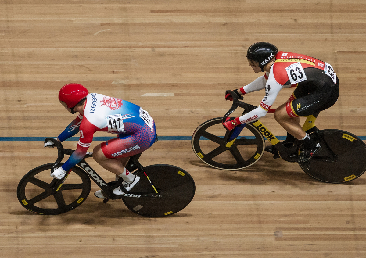 Денис Дмитриев и Дарья Шмелёва взяли золото в спринте в рамках чемпионата России по велоспорту на треке, который проходит в Санкт-Петербурге.