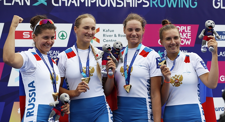 Президент Федерации гребного спорта России Алексей Свирин перед началом чемпионата Европы заявлял, что рассчитывает на три медали. Но прогноз не оправдался. Из десяти дисциплин, где было разыграно 18 комплектов наград, российская команда завоевала только одну, правда, высшего достоинства. Победу одержал женский экипаж четвёрки без рулевого в составе Екатерины Севостьяновой, Анастасии Тихановой, Екатерины Потаповой и Елены Орябинской.