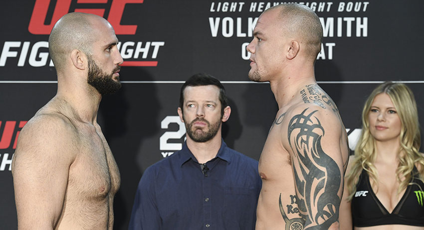 После Смиту удалось перехватить инициативу, в третьем раунде он провёл тейкдаун и забрал спину Волкана. В итоге боец применил к Оздемиру удушающий и вынудил того сдаться.
