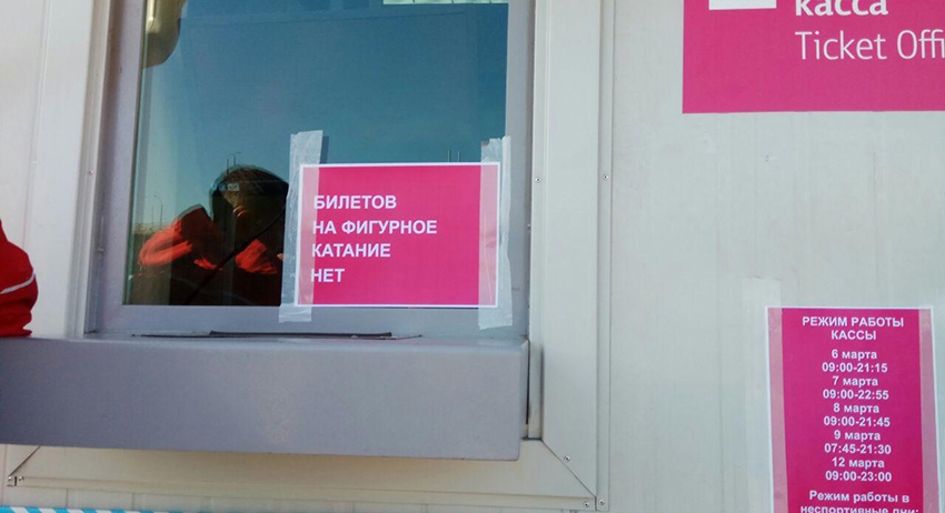 По состоянию на 7 марта в кассах «Платинум Арены» в Красноярске не осталось билетов на фигурное катание. Об этом свидетельствует объявление, которое висит на всех кассах комплекса, сообщает корреспондент News.ru.