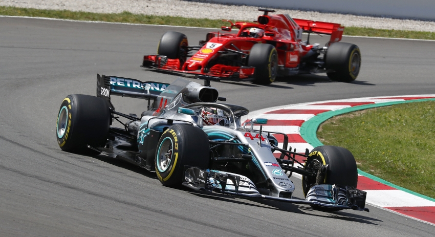 Рестарт был дан на седьмом круге из 66 кругов гонки и прошёл без приключений. Хэмилтон за пару кругов прогрел резину и начал штамповать лучшие круги, попутно устанавливая новые рекорды трассы в Барселоне в гонке. Приятным бонусом стал и рост преимущества над Феттелем, который не был в состоянии поддерживать темп британца. Более того, Себу больше приходилось думать о том, чтобы не дать догнать себя Боттасу, который потихоньку приближался к Ferrari.