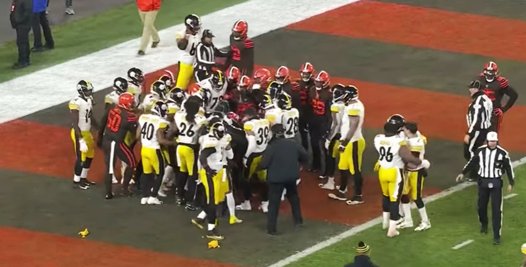 За несколько секунд до конца матча регулярного сезона Национальной футбольной лиги (NFL) между защитниками «Кливленда» и командой нападения «Питтсбурга» завязалась потасовка, которая переросла в массовую драку с участием запасных игроков.