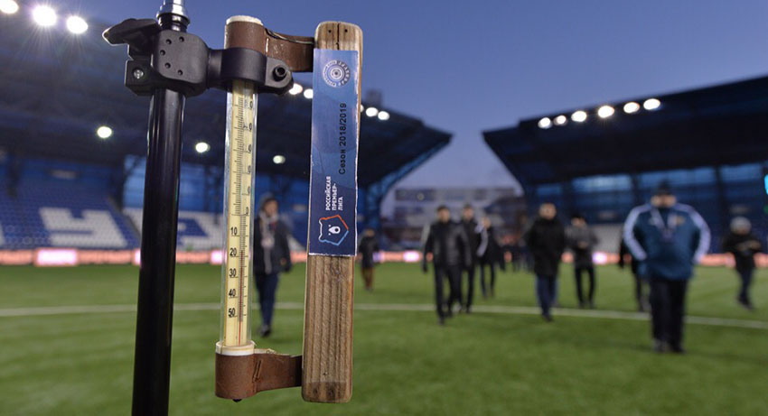 После измерения температуры на стадионе «Газовик» термометр показал отметку в -17 градусов.