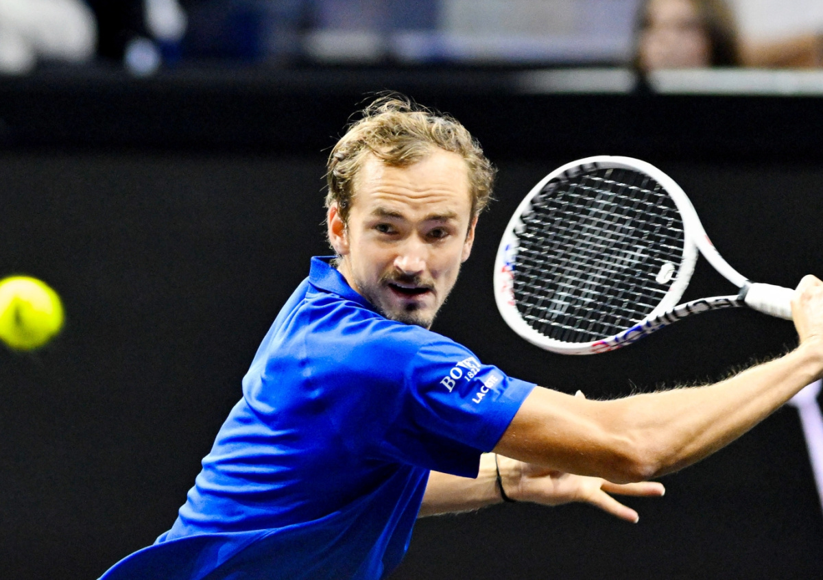 Российский теннисист Даниил Медведев во время матча с американцем Беном Шелтоном в рамках Кубка Лэйвера — 2024 швырнул ракетку. Это произошло на тай-брейке первого сета. Судья сделал спортсмену предупреждение.