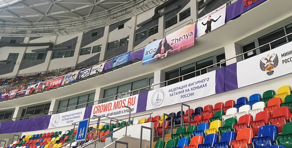 На Гран-при России болельщиков заставили перевесить баннеры с фигуристами