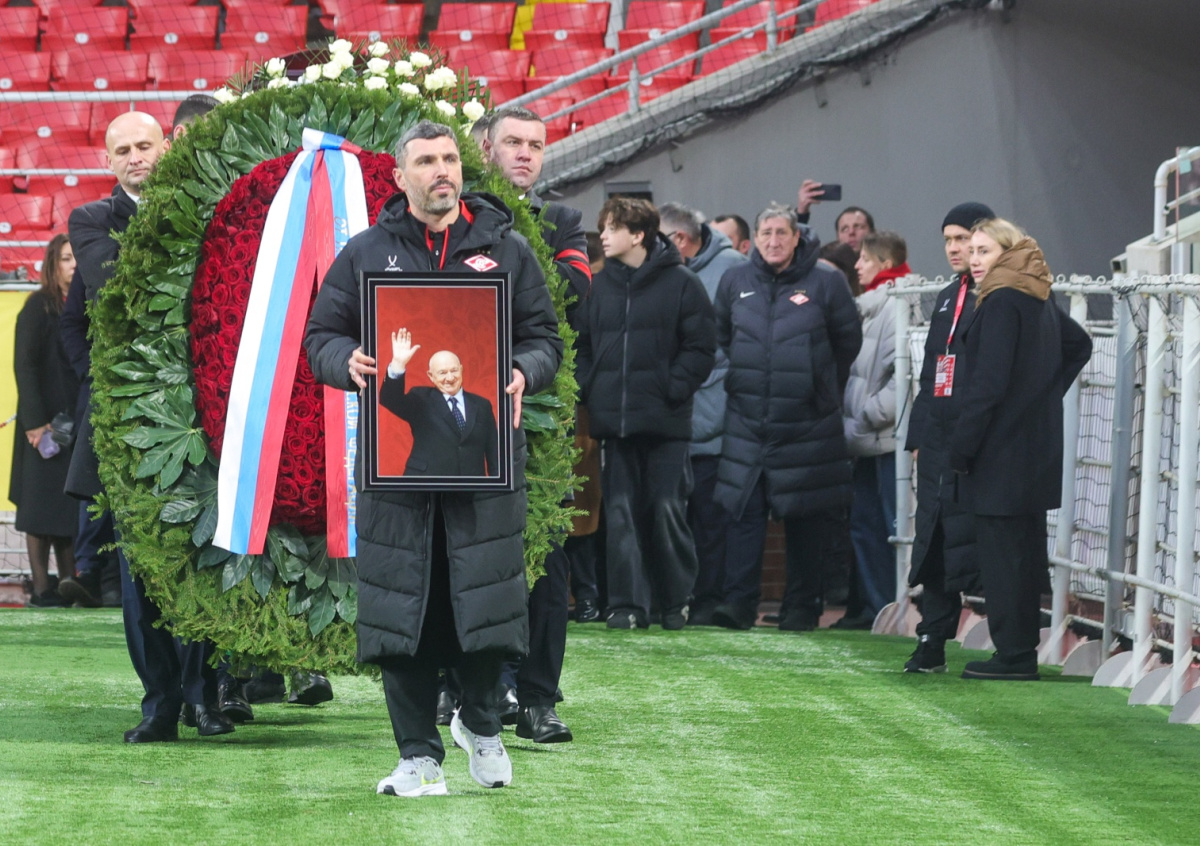 Путин прислал венок на прощание с легендой красно-белых. Композиция была собрана из красных роз и обрамлена зеленью, а также хвоей. На ней закрепили длинную ленту в цветах российского флага. Президент Международной федерации футбола (ФИФА) Джанни Инфантино и экс-владелец «Спартака» Леонид Федун также направили траурные венки.