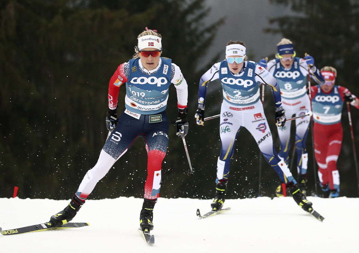 Норвежская спортсменка Тереза Йохауг заняла первое место в скиатлоне на чемпионате мира по лыжным видам спорта.