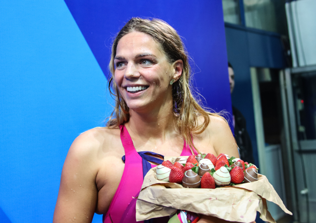 Призёр Олимпийских игр по плаванию Юлия Ефимова показала, как прошла по улице вместе с толпой протестующих американцев в городе Бэнд, штат Орегон.