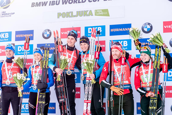 Сборная Франции по биатлону выиграла смешанную эстафету на шестом этапе Кубка мира в словенской Поклюке.