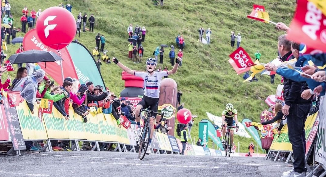 Велогонщик российской команды «Газпром-Русвело» (Gazprom-RusVelo) Александр Власов финишировал первым на шестом этапе многодневки «Тур Австрии».