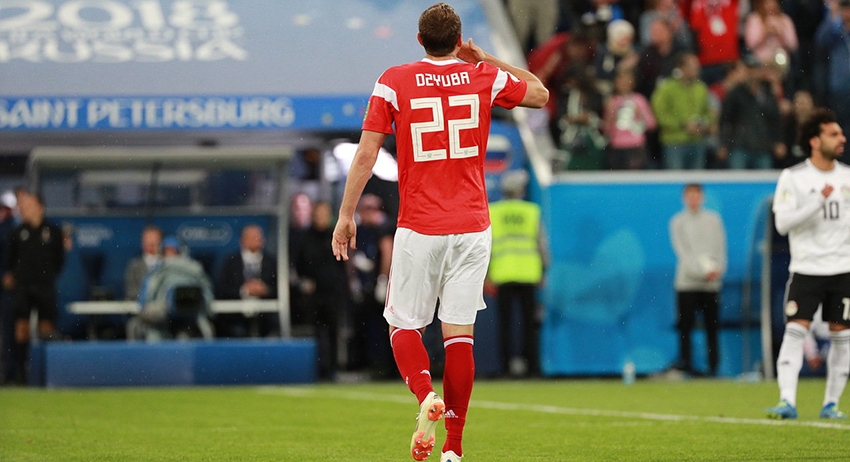 Нападающему «Ливерпуля» не хватило точности, но тревожный звонок для защиты прозвучал. В конце первого тайма попытка запустить волну на стадионе оказалась безуспешной — всё внимание было приковано к игре. Второй тайм начался с российских атак. В итоге капитан египтян Ахмед Фатхи ошибается в борьбе с Дзюбой в штрафной и срезает мяч в свои ворота.