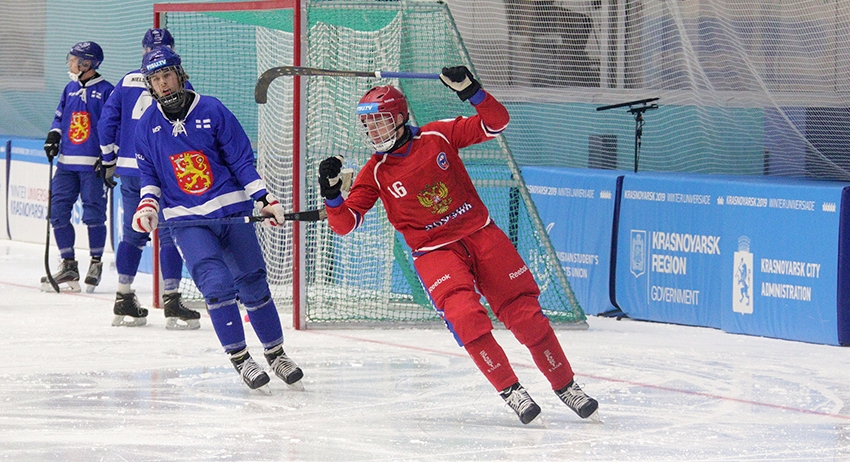 Мужская сборная России по хоккею с мячом в полуфинале турнира Универсиады разгромила национальную команду Финляндии.