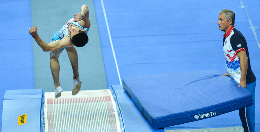 Мужская сборная России выиграла золотые медали чемпионата мира по прыжкам на батуте, проходящего в Токио, в командных соревнованиях в дисциплине двойной мини-трамп.