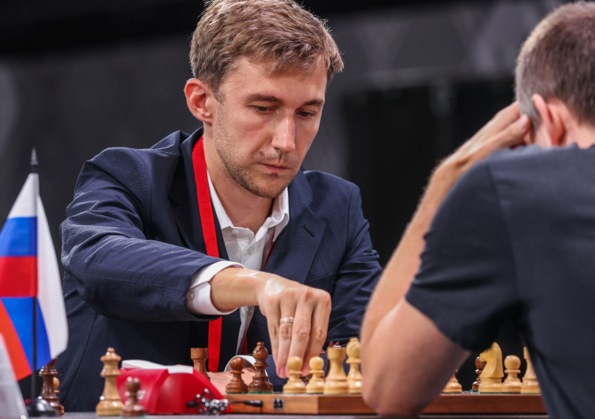 Гроссмейстер Сергей Карякин после финала шахматного турнира «Турнир звезд» в рамках Международного шахматного форума Moscow Open во Дворце гимнастики Ирины Винер-Усмановой