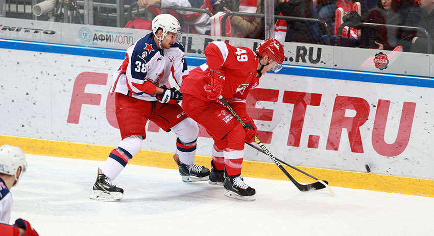 Московский хоккейный клуб «Спартак» уступил в домашнем матче регулярного чемпионата Континентальной хоккейной лиги (КХЛ) столичному ЦСКА. Встреча закончилась со счётом 3:4.