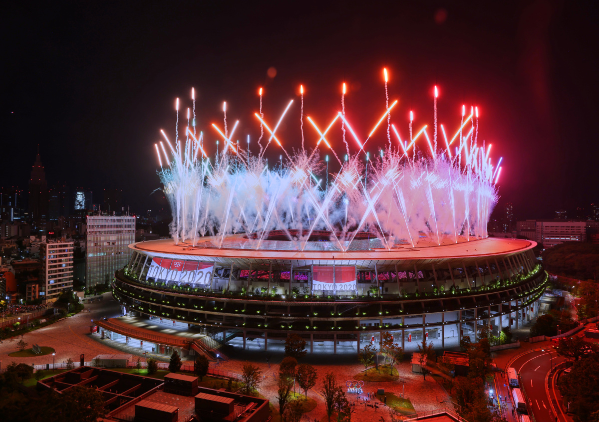 Фейерверк взорвался над Олимпийским стадионом во время церемонии закрытия Олимпийских игр — 2020