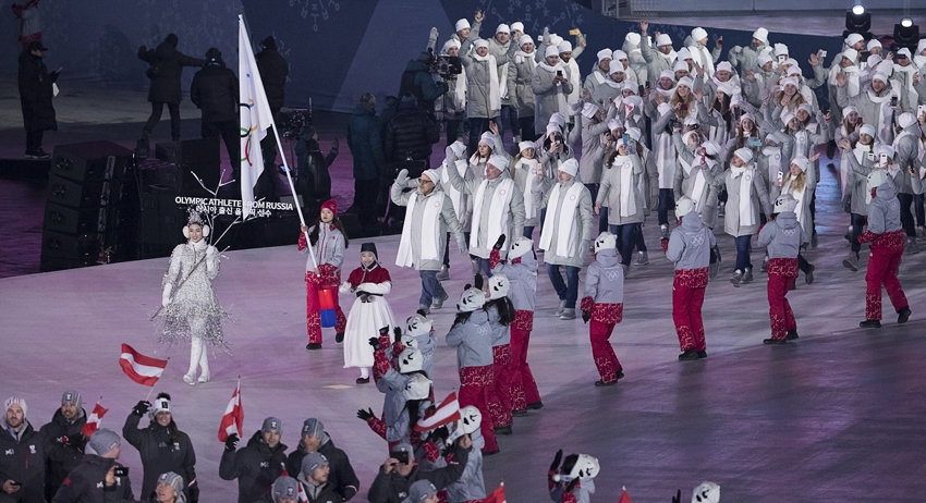 Церемония открытия зимних ОИ-2018 в Южной Корее состоялась сегодня, 9 февраля. Олимпийских атлетов из России, которые прошли 55-ми по счёту, болельщики на трибунах встретили аплодисментами.