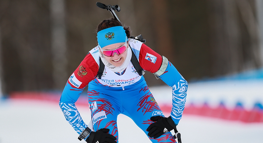 Биатлонистка сборной России Наталья Гербулова пришли к финишу в гонке с массового старта на Универсиаде в Красноярске третьей.