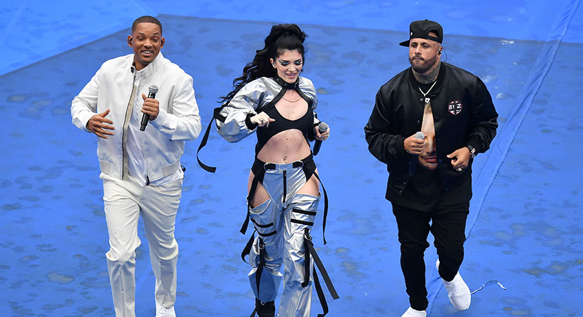 Официальную песню чемпионата мира по футболу Live It Up исполнили на поле главного российского стадиона Уилл Смит, американский певец Никки Джэм и албанская певица Эра Истрефи.