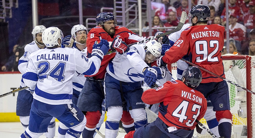 «Тампа» обыграла «Вашингтон» в четвёртом матче серии 1/2 финала плей-офф Национальной хоккейной лиги со счётом 4:2.