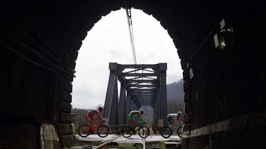 Да-да, не ошиблись — брендированный поезд РЖД прошёл в тот момент, когда спортсменам до финиша оставалось 78 км. И проезжали гонщики вместе с поездом мимо Чириале, коммуны Италии, расположенной в регионе Лигурия (провинция Савона).