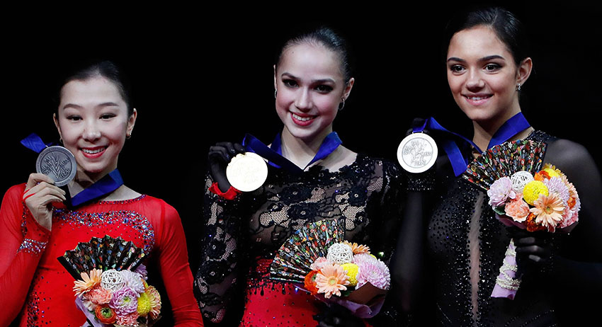 За произвольную программу Загитова получила 155,42 балла, а по сумме двух выступлений — 237,50 балла. Второе место заняла ещё одна ученица Этери Тутберидзе — казахстанская фигуристка Элизабет Турсынбаева (224,76). Третьей стала россиянка Евгения Медведева (223,80). Софья Самодурова заняла восьмое место (208,58).