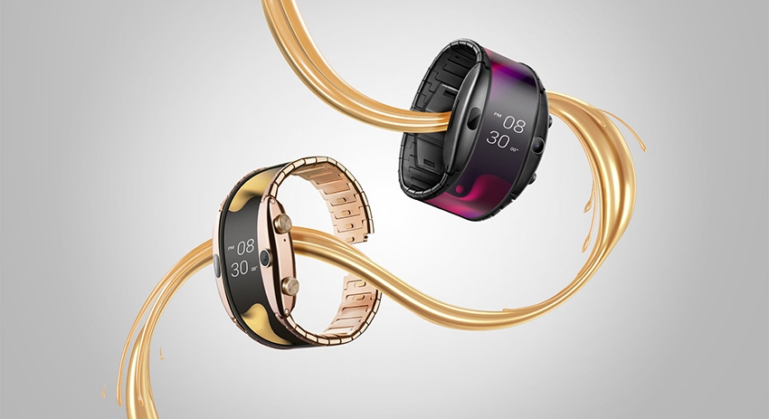 Компания Nubia в рамках выставки MWC 2019 представила необычное устройство Nubia Alpha. Оно представляет собой нечто среднее между смартфоном и умными часами с гибким OLED-экраном, а сам производитель называет его «носимым телефоном».