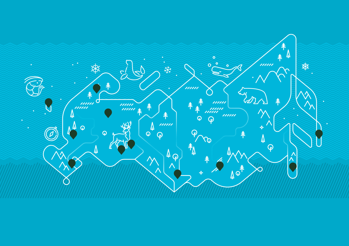 На интерактивной карте размещены карточки десяти заповедников, национальных и природных парков с подробной информацией. Например, Куршская коса — самая длинная песчаная пересыпь в мире, государственный природный заповедник «Дагестанский» — уникальная охраняемая территория, природный парк «Вулканы Камчатки» — четыре завораживающих вулкана полуострова, и другие.