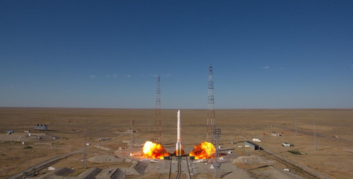 Ракета-носитель «Протон-М» с разгонным блоком «Бриз-М» вывезена на стартовый стол космодрома Байконур. Она должна вывести на орбиту европейский спутник Eutelsat-5WB и американский аппарат MEV-1.