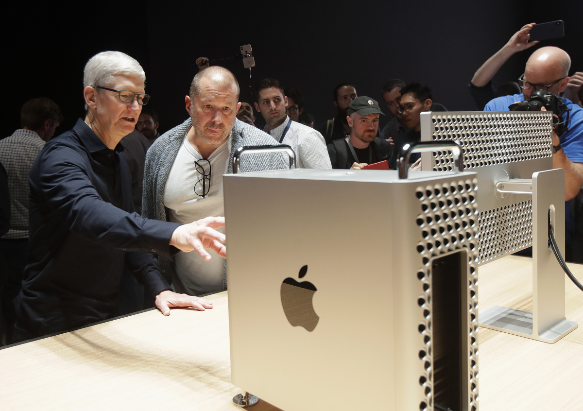 Глава компании Apple Тим Кук (слева) и главный дизайнер Apple Джонатан Айв (второй слева) у обновленного компьютера Mac Pro на презентации новых продуктов компании на конференции WWDC 2019 Глава компании Apple Тим Кук (слева) и главный дизайнер Apple Джонатан Айв (второй слева) у обновленного компьютера Mac Pro на презентации новых продуктов компании на конференции WWDC 2019 Фото: . AP Photo/Jeff Chiu/ТАСС
