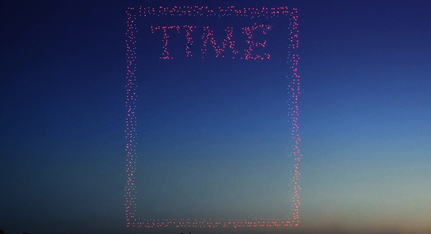 Журнал Time в сотрудничестве с компанией Intel представил новую обложку — на ней с помощью 958 дронов они воссоздали знаменитую красную рамку издания с названием высотой в 100 метров. Стоит отметить, что впервые в истории Time снимок также был сделан беспилотным аппаратом.