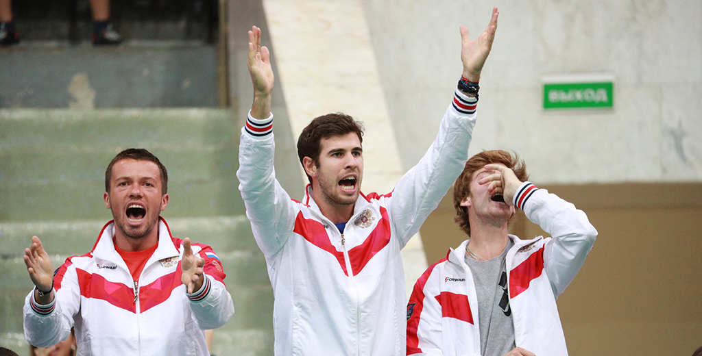 Карен Хачанов (в центре) Карен Хачанов (в центре) Фото: Сергей Булкин/News.ru