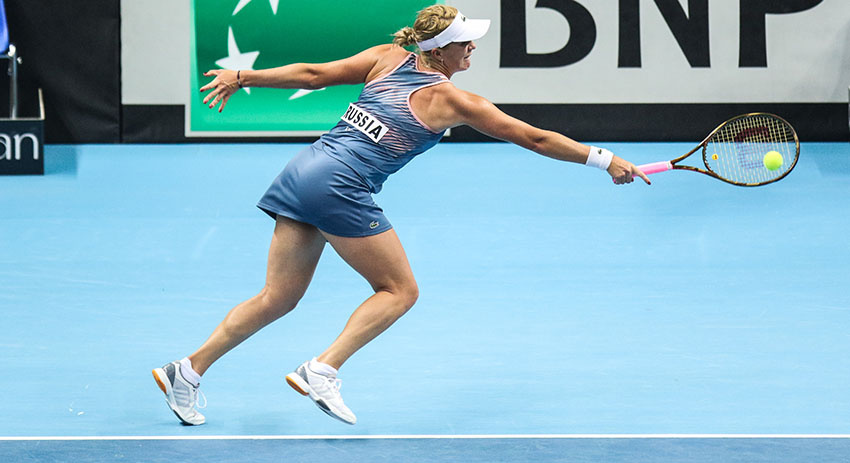 Она в двух сетах уступила гречанке Марии Саккари — 1:6, 5:7. Спортсменки провели на корте 1 час и 32 минуты. Павлюченкова за это время один раз подала навылет, а также допустила три двойные ошибки.