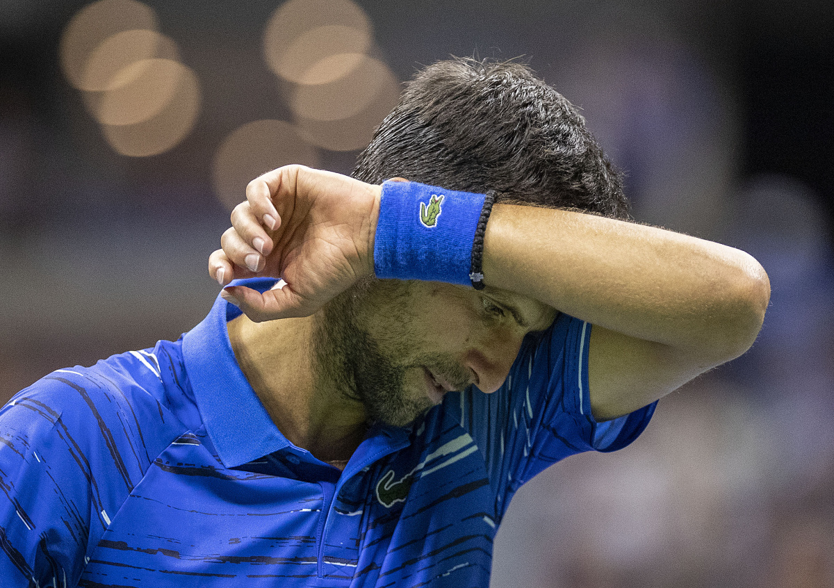 Инцидент произошёл в матче четвёртого круга с испанцем Пабло Карреньо-Бустой после проигранного Джоковичем гейма при счёте 5:6. На кадрах видно, как спортсмен выбил мяч в сторону линейного судьи. Он угодил женщине в область головы. Она села на корт и закрыла лицо руками. После этого Джокович начал извиняться, однако арбитры решили дисквалифицировать его за неспортивное поведение. Организаторы лишили его заработанных рейтинговых очков и призовых денег.