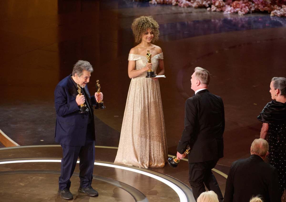 Номинировано десять замечательных фильмов, но награду за лучший фильм получит только один. И для этого мне нужно подойти к конверту. Вот оно. И мои глаза видят «Оппенгеймера», да!сказал со сцены Аль Пачино.