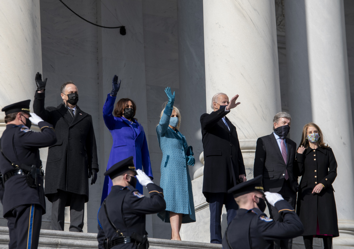 Глава государства положил левую руку на Библию, которую держала перед ним супруга Джилл Байден, и произнёс текст из 35 слов. Затем над Капитолийским холмом раздался 21 залп из артиллерийских орудий.