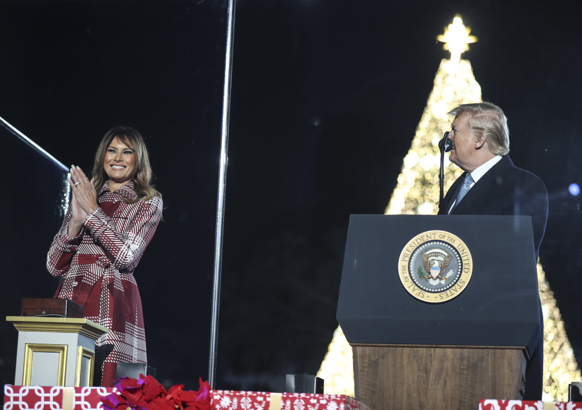 Президент и первая леди США Дональд и Мелания Трамп зажгли огни на рождественской ели, установленной в парке Эллипс у Белого дома в Вашингтоне. Глава Штатов вышел на сцену под песню «О ёлочка» (O Christmas Tree).