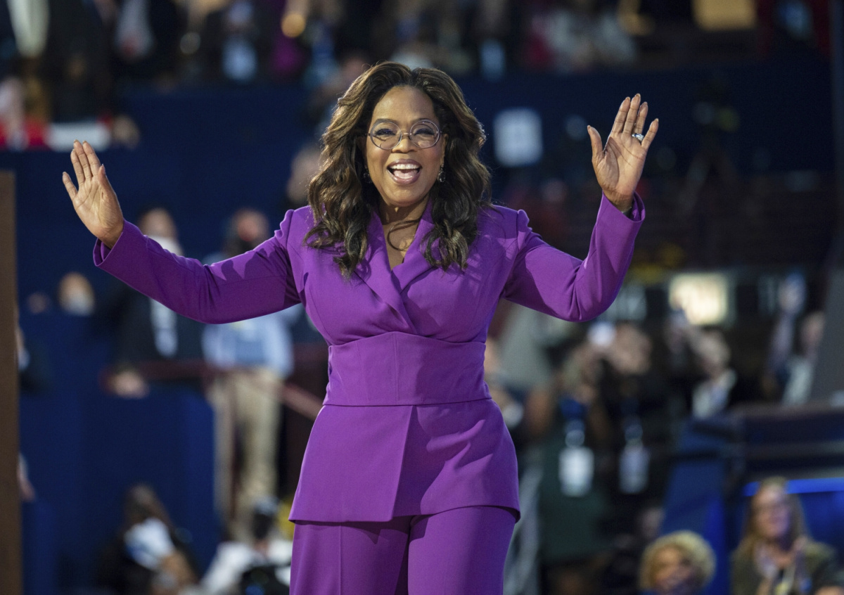 Знаменитость была одета в фиолетовую водолазку, которая подчеркивала ее талию, и брюки карго коричневого цвета. Телеведущая дополнила образ поясом и туфлями-лодочками на каблуке. Как пишет газета, сначала звезда отрицала использование препаратов для похудения, но в декабре 2023 года призналась, что с их помощью сбросила 18 килограммов. Также Уинфри делала физические упражнения, включая пешие прогулки.