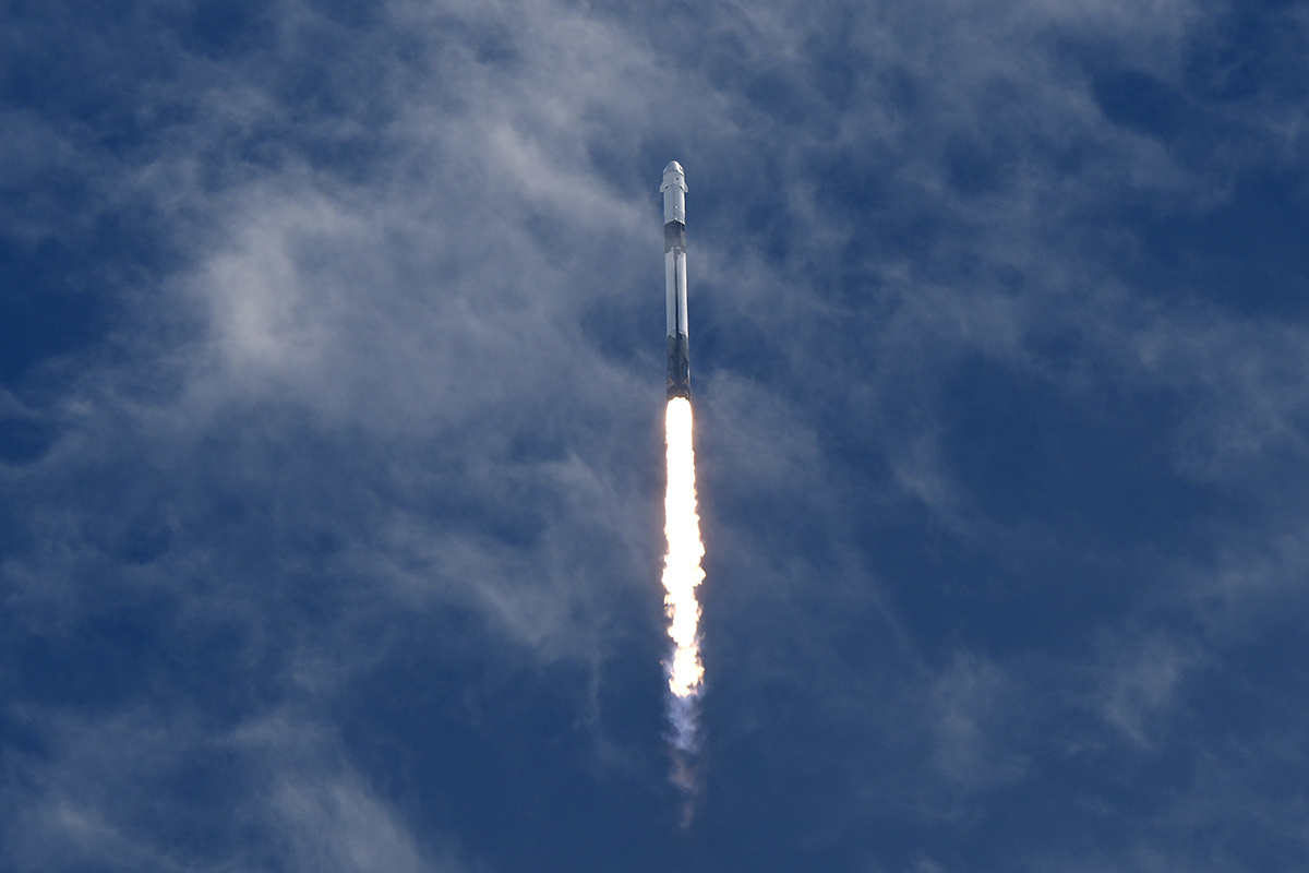Ракета-носитель Falcon 9 с космическим кораблем Crew Dragon американской компании SpaceX после старта Ракета-носитель Falcon 9 с космическим кораблем Crew Dragon американской компании SpaceX после старта Фото: Chris O'Meara/AP/TASS