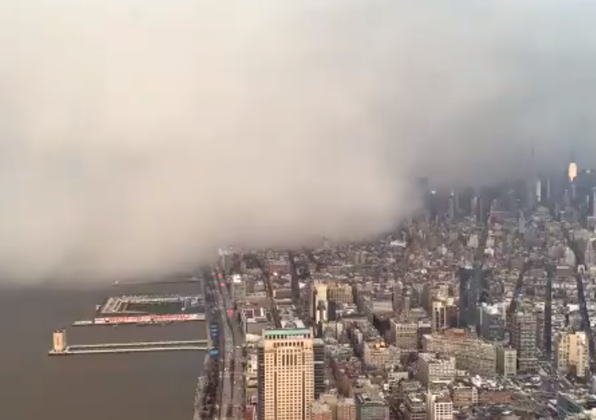 Со смотровой площадки Всемирного торгового центра в Нью-Йорке сняли «ледяное» облако, буквально накрывшее город. Видео опубликовал в Twitter журналист телеканала First Coast News Дэвид Джонс.