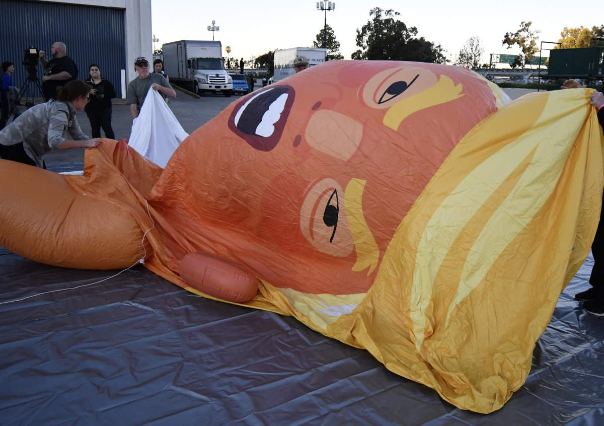 Жители американского города Балтимор штата Мэриленд «подготовились» к визиту президента США Дональда Трампа, подняв в воздух огромный шар, изображающий его в образе крысы.