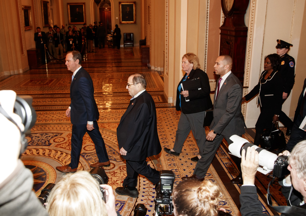 Председатель Комитета по разведке Палаты представителей США Адам Шифф, председатель Судебного комитета Палаты представителей США Джерри Надлер в Сенате США Председатель Комитета по разведке Палаты представителей США Адам Шифф, председатель Судебного комитета Палаты представителей США Джерри Надлер в Сенате США Фото: Ting Shen/Xinhua/Global Look Press