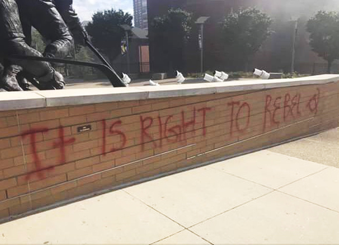 В американском Питтсбурге вандалы разрисовали статую канадского хоккеиста, двукратного обладателя Кубка Стэнли Марио Лемье.