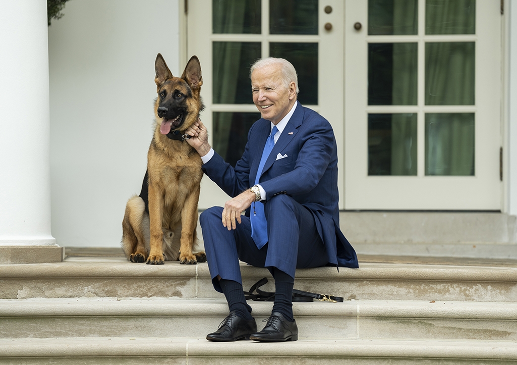 Байден поселился в Белом доме с двумя немецкими овчарками — пожилым Чемпом, скончавшимся в июне 2021 года, и молодым Мейджором. В том же году из переписки сотрудников президентской охраны американские СМИ узнали, что Мейджор кусал людей в Белом доме почти ежедневно. Байдену пришлось передать его на попечение друзьям семьи. В декабре 2021 года американский президент сообщил, что завел щенка немецкой овчарки по кличке Коммандер.