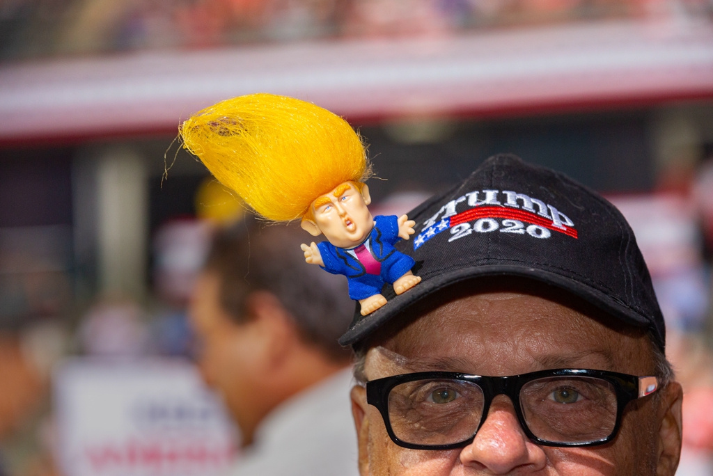 Во время речи американского лидера на митинге появились противники политики Трампа и попытались сорвать его выступление, что предотвратила охрана. Но Трамп обратил внимание на одного человека из публики и раскритиковал его внешний вид.